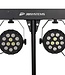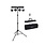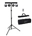 Deze standaard set bestaat uit 2 x RGBW PAR met een zeer smalle stralingshoek, 2 x RGBW DERBY, een lichtstatief en 2 draagtassen.