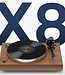 De X8 erfde het massieve MDF-chassis en de eersteklas Pro-Ject 9cc EVO carbon toonarm van zijn grotere broers en zussen. De in hoogte verstelbare X8 is voorzien van machinaal bewerkte aluminium poten. De TPE-dempingstechnologie in de voeten ontkoppelt de X8 effectief van de ondergrond waarop deze wordt geplaatst. De voetjes zijn een goede keuze voor een meer budgetgerichte draaitafel, omdat ze sneller en gemakkelijker te installeren zijn dan de magnetische voetjes op de X9/10, en Echt gebalanceerde verbinding
