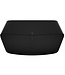 De Sonos Five in strak zwart levert een ongeëvenaarde geluidskwaliteit voor muziekliefhebbers die alleen het allerbeste willen. Met heldere hoge tonen, diepe bass en perfect gebalanceerd midden bereik, brengt deze premium wifi-speaker elk nummer tot leven – precies zoals de artiest het bedoeld heeft.